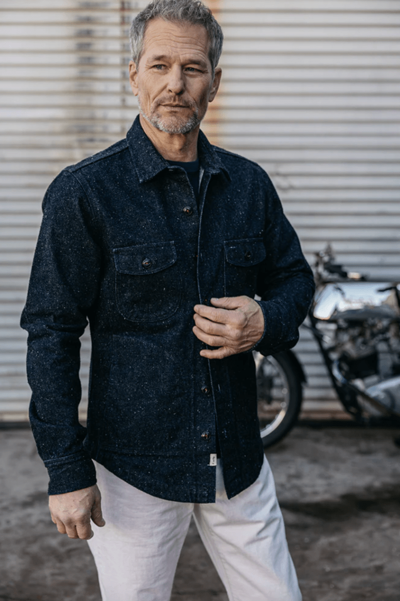 Fitted 3D panel shirt jacket. 13oz old nep selvedge...