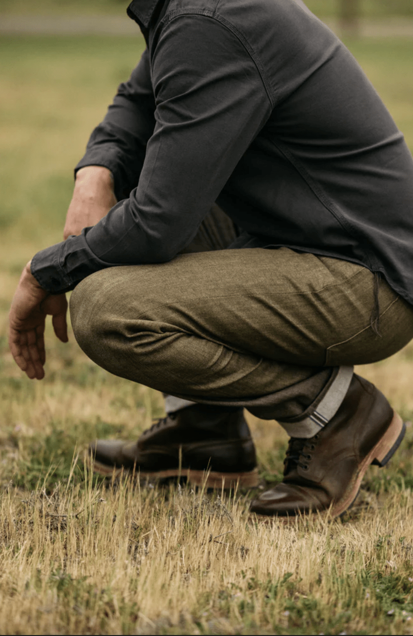 Using a sulfur dye, we are able to create colored denim that fades just like classic blue jeans. Our lightweight 10.5oz denim 4-Way Stretch Selvedge has all of the qualities of top shelf Japanese selvedge while offering a level of comfort and range of motion not possible in a 100% cotton jean.