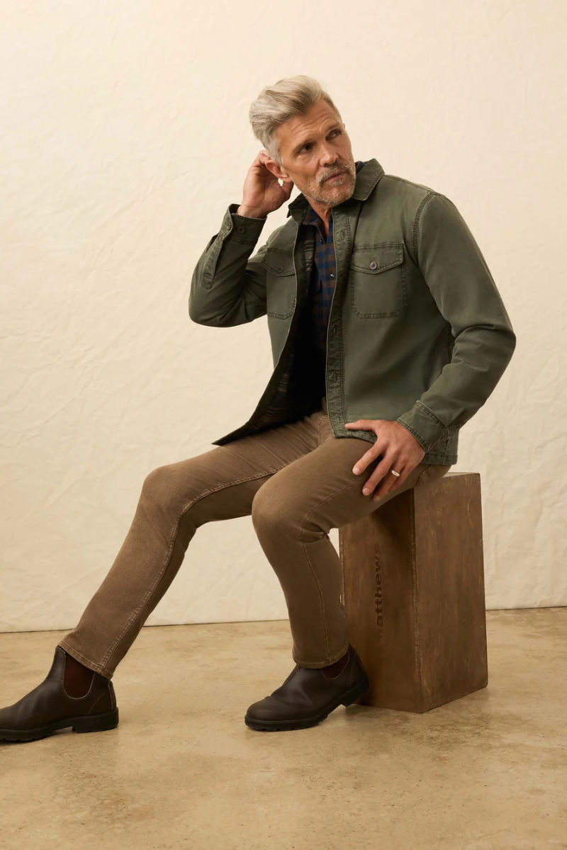 Rugged where it counts and refined where it matters, Faherty's new jacket is crafted from durable cotton with just the right amount of stretch. Finished with authentic three-needle topstitching that nods to classic workwear, while the insulated lining adds reliable warmth for those in-between days that don’t follow the forecast.