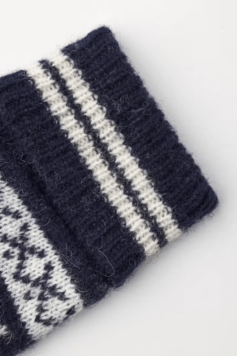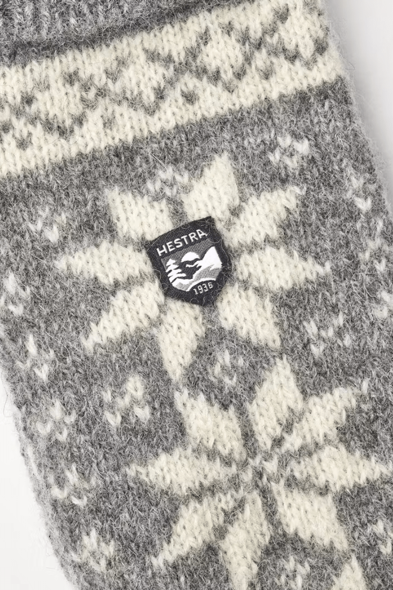 A classic knitted mitten in wool. Knitted in a traditional Nordic Fair Isle design in soft, fine wool yarn blended with a little polyamide for extra strength. The cuff is ribbed and there is a small Hestra logo on the backhand. A timeless, beautiful design that keeps hands warm in milder days of autumn and winter.