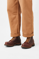 Oil rig workers, known as roughnecks, needed tough, rugged boots to help keep them safe on the job. The men's Roughneck brings this iconic Red Wing style up to date with rich Black Oil Slick leather, an aggressive Vibram® lug outsole to grip any surface, and Puritan triple-stitch construction with a Goodyear leather welt for long-lasting, resoleable wear.