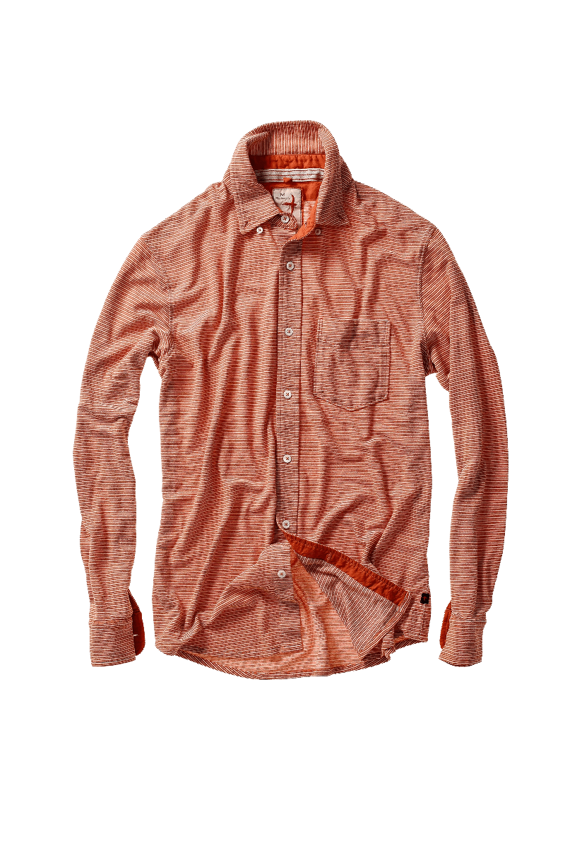 Hemp Stripe Buttondown - Burnt Orange/White