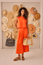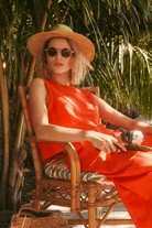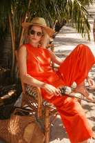 Back by popular demand, the beloved Cunningham Pant returns in Grenadine, Hunter’s favorite color of the season. Crafted from luxurious non-stretch linen, this high-waisted silhouette features a flattering pleated front, discreet on-seam pockets, and a wide, relaxed leg that falls just above the ankle. Effortlessly refined yet easy to wear, these pants bring timeless polish to any look. Pair them with the matching Manning Top for a bold, head-turning set.