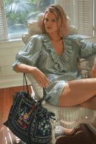 • Top with ruffle detail finished with picot edging in a hand-block-inspired floral motif.