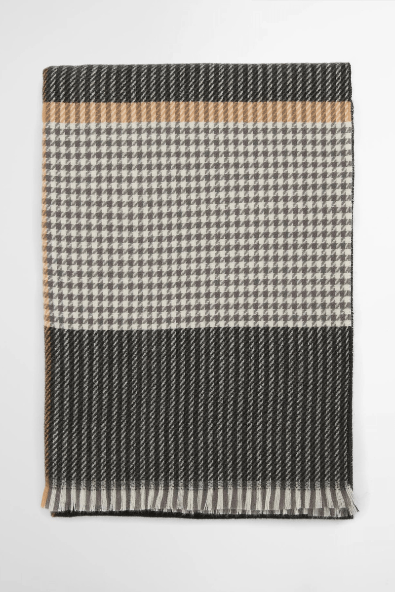 The Barbour Melody Scarf is designed to provide unbeatable warmth in the colder months. It carries an oversized check and is finished with a fringed hem for a touch of texture.