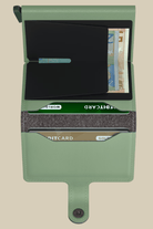 Small in size and surprisingly large in storage capacity, the Miniwallet combines the best of both worlds. The exterior holds banknotes, receipt and cards, while the aluminum card protector allows you to slide out cards with one simple motion and protects them from bending, breaking and unwanted wireless communication.