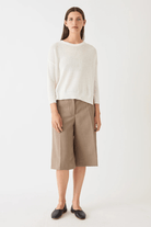 Lightweight linen sweater with side vents, dropped shoulder seam, relaxed body.