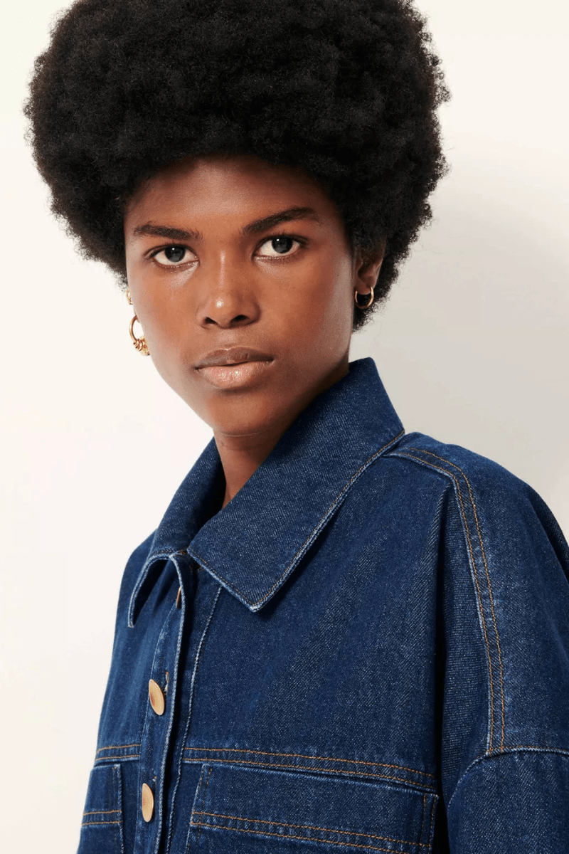 Cropped short-sleeve polo shirt in compact indigo denim twill.