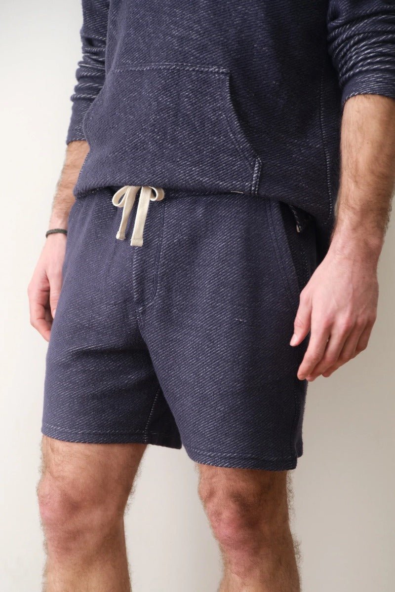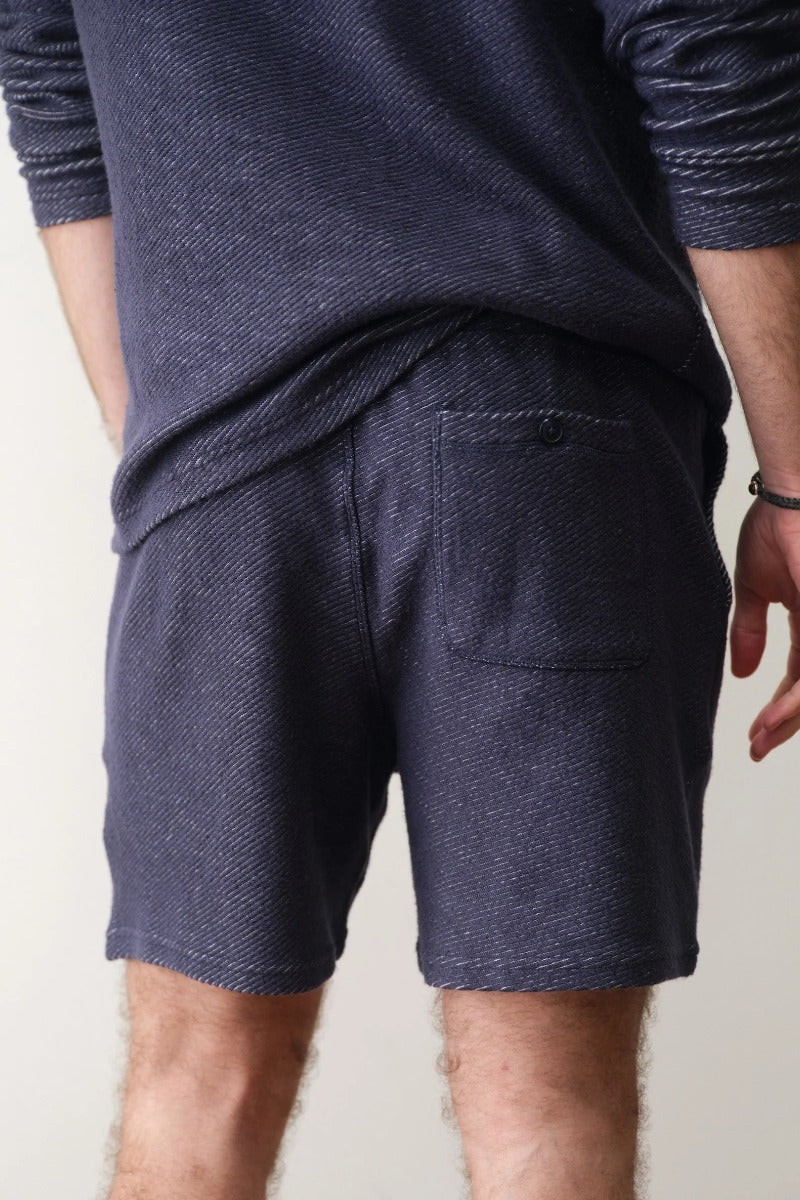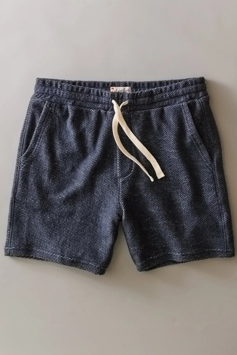 The Portola Beach Short features an incredibly soft terry twill knit construction made from 100% organic cotton. These comfortable drawstring shorts offer a stylish alternative to traditional sweatshorts with their refined 6-inch inseam length.