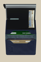 Its slim profile allows the Slimwallet to fit perfectly into any pocket. The open exterior is designed extra wide to accommodate cards, banknotes and receipts. The Cardprotector mechanism enables you to slide out cards with a simple motion, while the aluminium construction protects your cards from bending, breaking and unwanted wireless communication.