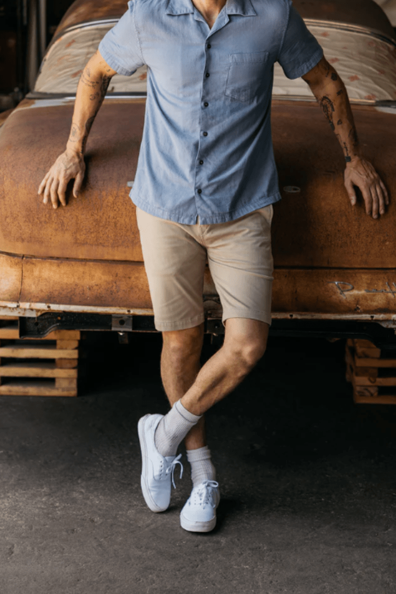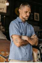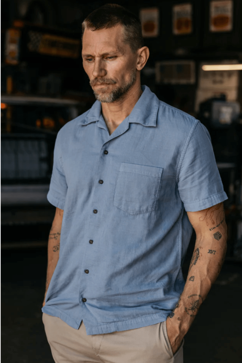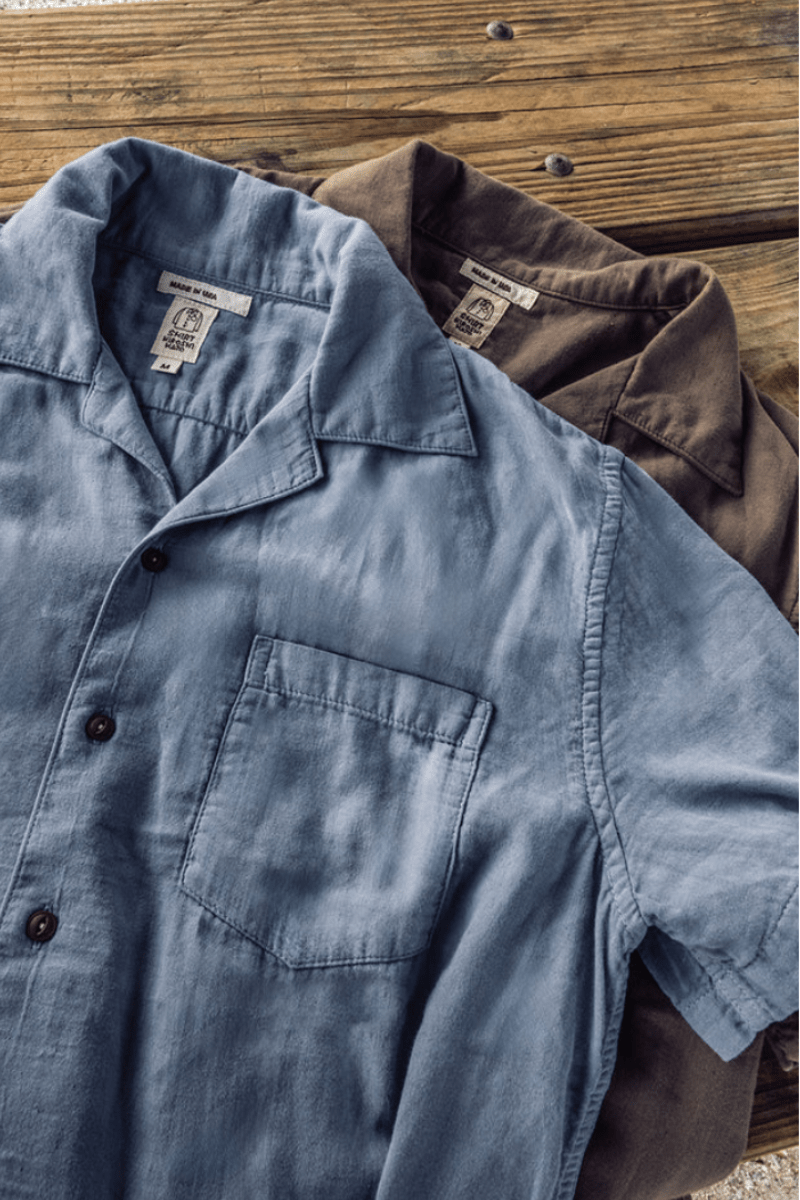 Kato's essential 100% organic cotton double gauze fabric is one of their most popular for a reason. The unmatched softness and breathability of this fabric makes for a shirt you will never want to take off. This take on the Hawaiian shirt foregoes loud patterns for solid tones and classy cat’s eye buttons. This shirt is garment dyed for a broken-in look that will get even better with wear.